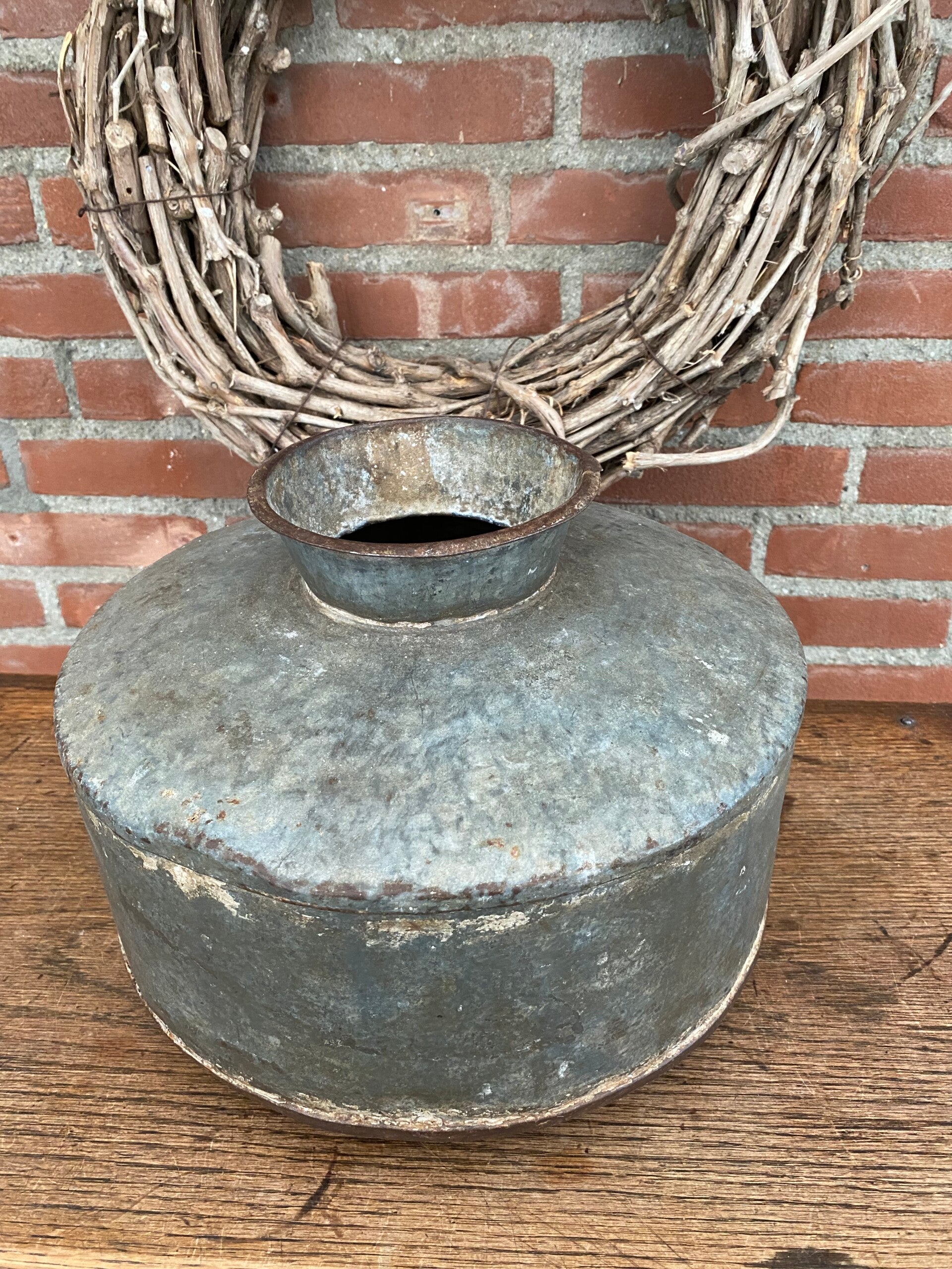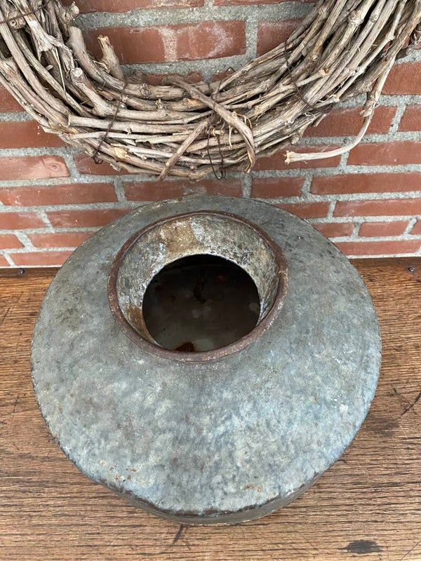 Industriële ijzeren vaas. Hier mag geen water in, wel kun je een glaasje water in de vaas zetten en dan de bloemen erin. Maar natuurlijk ook mooi om zo neer te zetten, een echte eye-catcher! Afm.: 30x21, het gat is 9,5 cm.