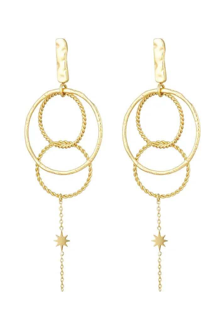 Oorbellen cirkels met ketting - goud