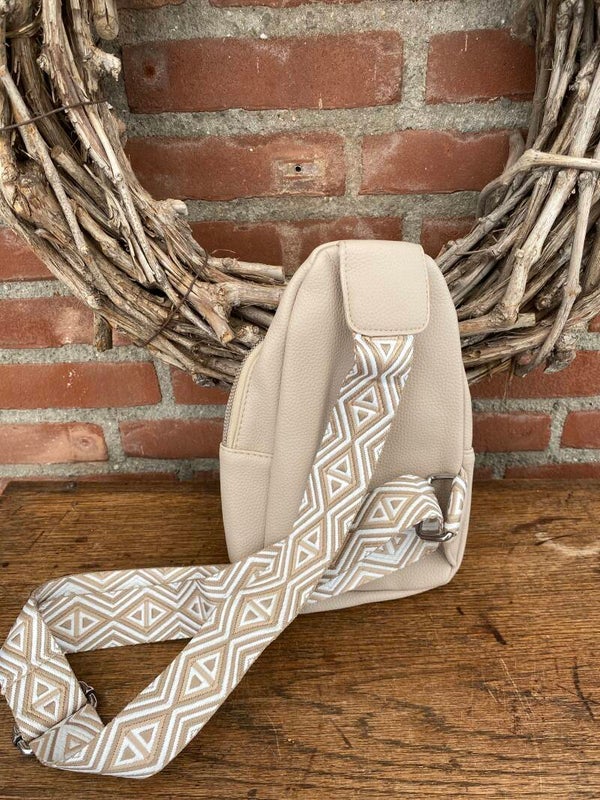 Leuke crossbody tas in de kleur beige met 2 opbergvakken. Afm.m lengte 26 cm, 17 cm breed.