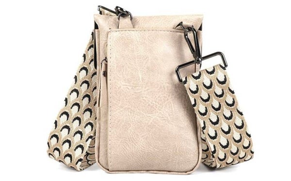 Stylisch telefoontasje met studs van fijn formaat om overal mee naar toe te nemen. Dit telefoontasje bestaat uit een vak waar iedere soort mobiele telefoon goed in past. Het hoofdvak wordt afgesloten door een envelopflap met magneetsluiting. De geweven schouderband / bag strap geeft dit stylische tasje een unieke look. Aan de achterkant van het tasje zit een klein vakje afgesloten met rits. De perfecte manier om kleine kostbaarheden veilig te bewaren bewaren.Afm.: 12cm x 19,5cm